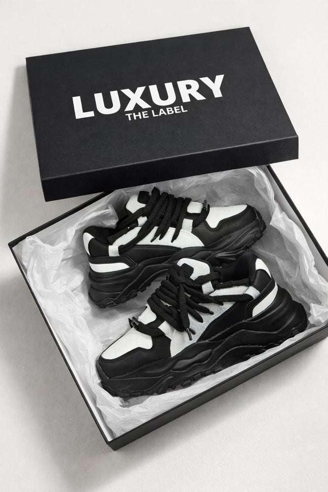 Bold black and white trainers with a clean silhouette and chunky sole. Designed for comfort, built for impact. Finished with premium details and signature LuxuryTheLabel style.